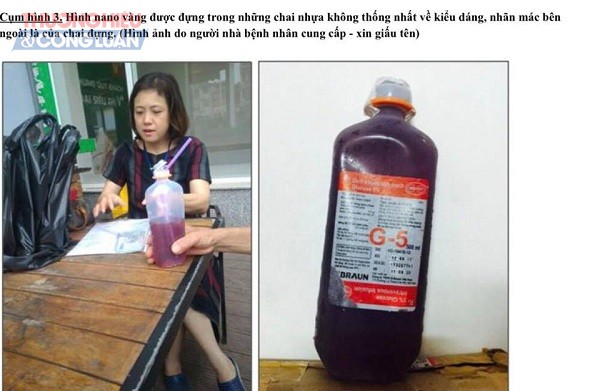 Điều đáng nói, sau khi nhận được sự đồng ý của người bệnh, người đàn ông tên Thắng đưa cho người bệnh sử dụng là các chai không nhãn mác, không thông tin về sản phẩm, đựng trong các chai nhựa với giá thành từ 10 - 15 triệu/1 chai. Người nhận các chai vàng này phải ký một giấy “giấy cam kết” ghi là “cung cấp miễn phí” và nhiều nội dung “miễn trừ trách nhiệm cho người cung cấp”.