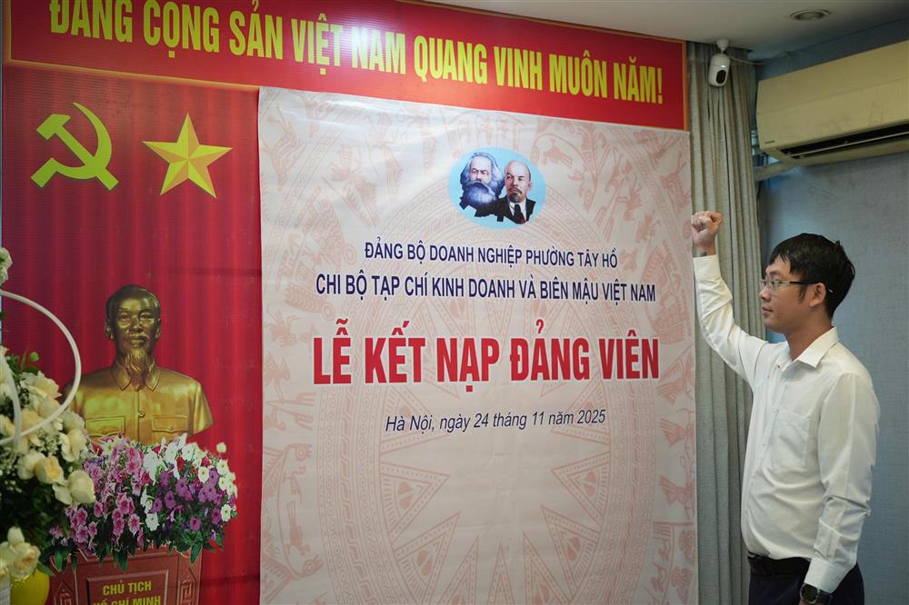 Lễ kết nạp đảng viên mới khép lại trong không khí trang trọng, ấm áp, thể hiện rõ tinh thần đoàn kết và quyết tâm của tập thể Chi bộ Tạp chí Kinh doanh và Biên mậu Việt Nam.