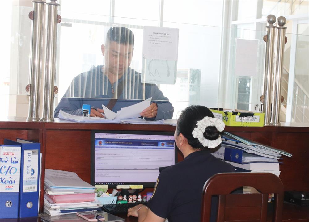 Cán bộ Hải Quan hiện thủ tục hành chính tận tâm, nhiệt tình hướng dẫn người dân, doanh nghiệp.