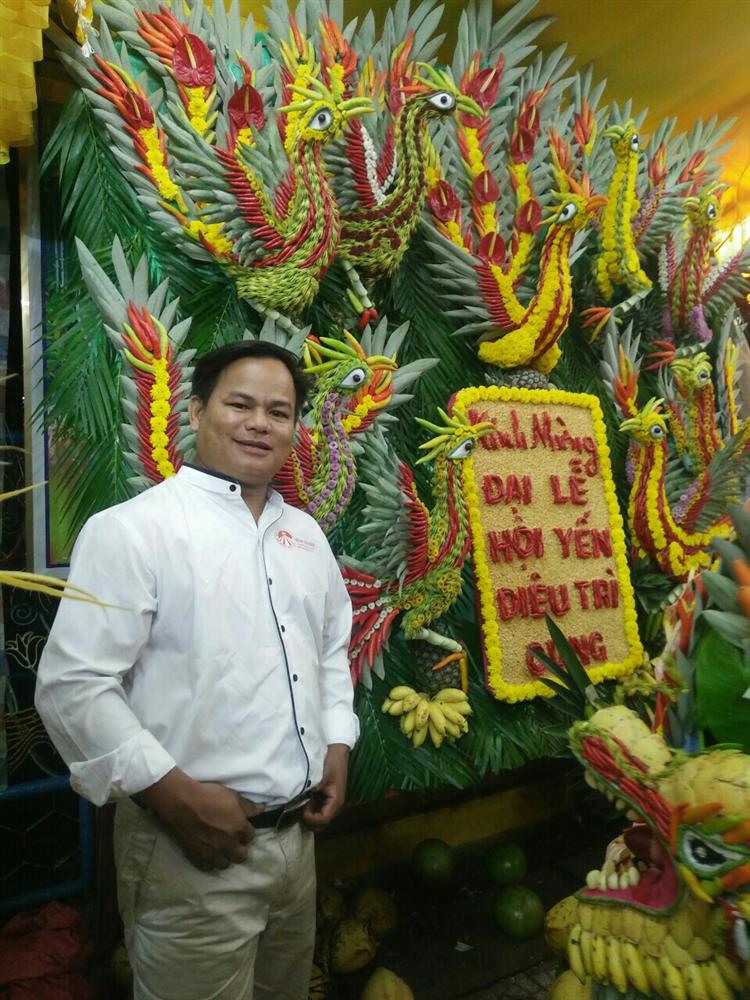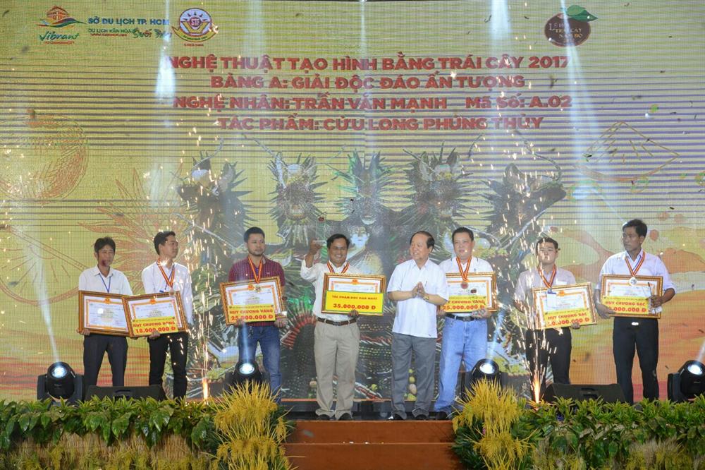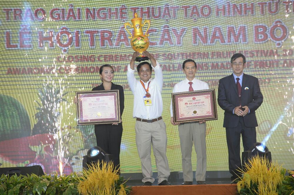 Nghệ nhân Trần Văn Mạnh nhận cúp vàng tại hội thi tạo hình nghệ thuật bằng trái cây tại Suối Tiên