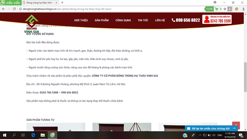 Sau khi tiếp nhận thông tin phản ánh, PV đã liên hệ và có buổi làm việc với Công ty Cổ phần Đông trùng hạ thảo Vinh Gia (Cty Vinh Gia) để xác nhận thông tin sản phẩm. Tuy nhiên, ngay sau đó phía công ty đã tháo gỡ thông tin mà không có lời giải thích.