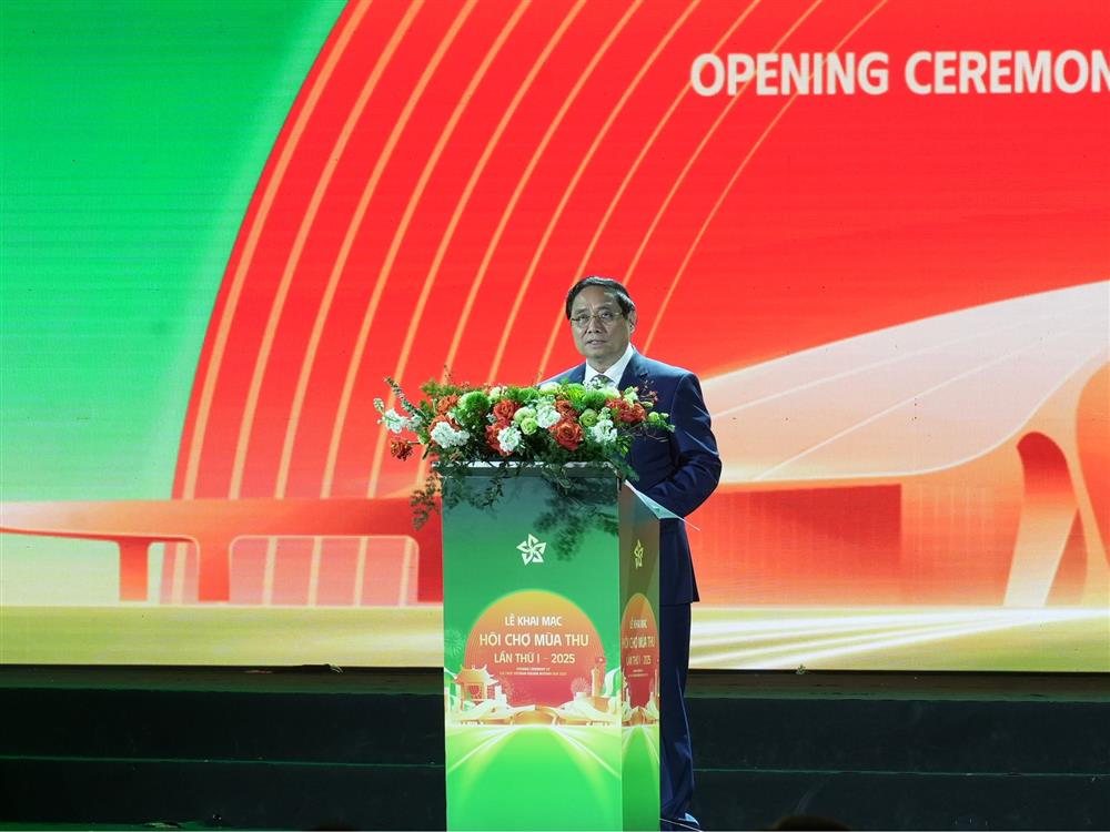 Phát biểu tại Lễ khai mạc Hội chợ Mùa Thu lần thứ nhất - 2025, Thủ tướng Chính phủ Phạm Minh Chính nhấn mạnh: Trong không khí tươi đẹp, lắng đọng của mùa thu Hà Nội, mùa của lịch sử, của đổi mới và khát vọng, toàn Đảng, toàn dân, toàn quân đang ra sức thi đua “tăng tốc, bứt phá” để hoàn thành thắng lợi các mục tiêu phát triển kinh tế - xã hội năm 2025 và cả nhiệm kỳ 2021 - 2025, hướng tới chào mừng Đại hội đại biểu toàn quốc lần thứ XIV của Đảng.