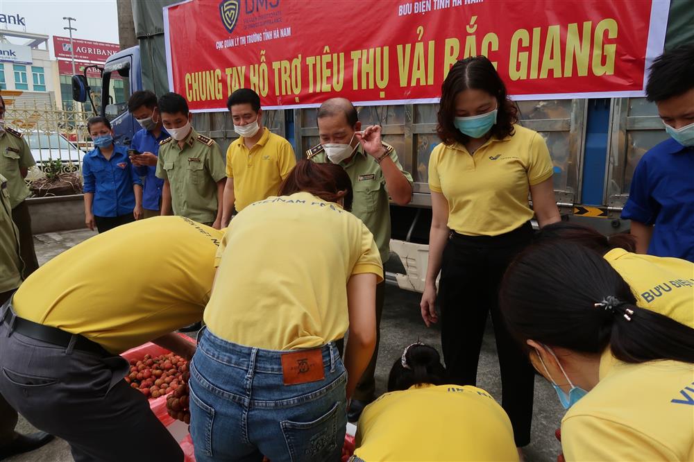 Ngày 9/6/2021 Cục QLTT Hà Nam phối hợp với Bưu điện tỉnh Hà Nam đã hỗ trợ tiêu thụ đợt 1 với số lượng 14,5 tấn vải.