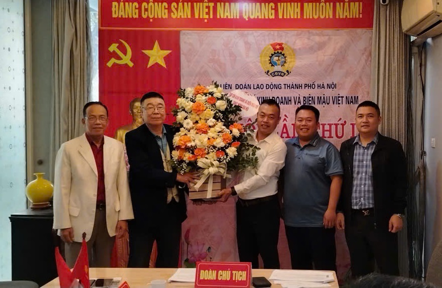 Đại hội vui mừng đón nhận lẵng hoa chúc mừng của Tạp chí Kinh doanh và Biên mậu Việt Nam