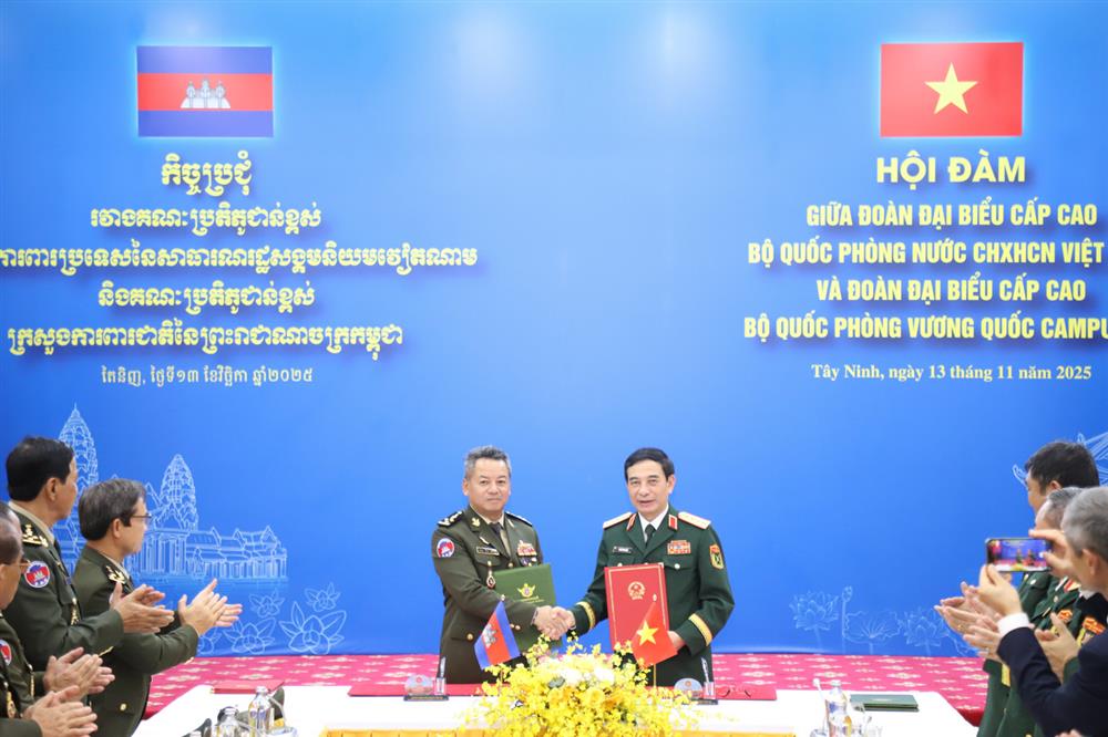 Cuối cùng, Hội đàm và ký kết các văn kiện hợp tác giữa Bộ Quốc phòng hai nước.Trong Hội đàm, Bộ trưởng Quốc phòng hai nước Việt Nam và Campuchia đã ký kết Kế hoạch hợp tác năm 2026; Bản ghi nhớ về tăng cường hợp tác trong lĩnh vực đào tạo, tập huấn nguồn nhân lực; Thỏa thuận về hợp tác biên phòng.