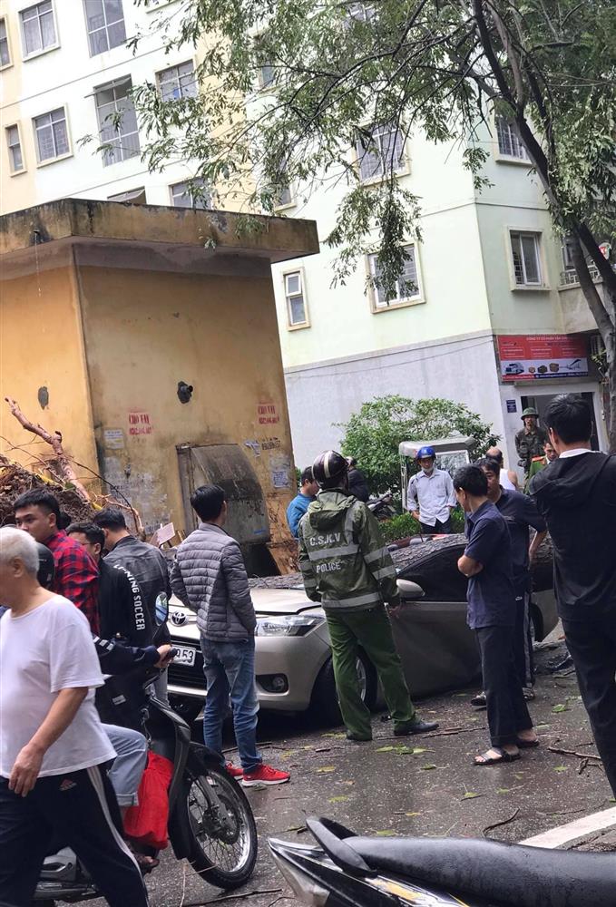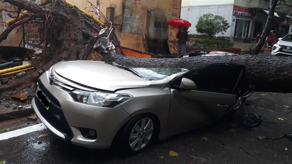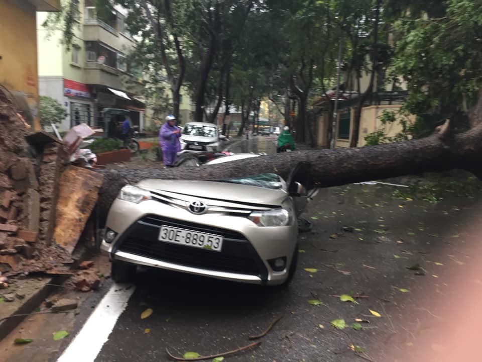 Nhiều phương tiện xe cộ đỗ bên lề đường đã bị cây xanh bật gốc đổ vào làm hư hại tài sản nghiêm trọng.
