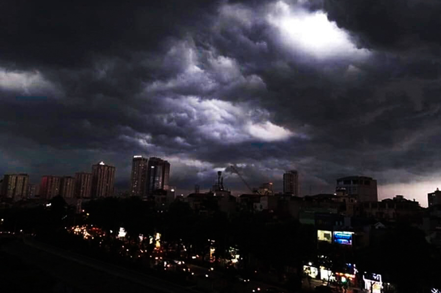 đường Phạm Hùng ngập nặng khi cơn giông ập tới