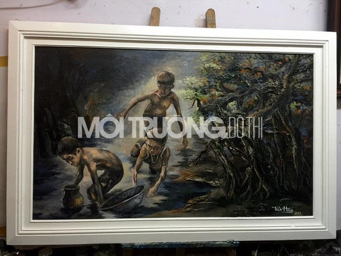 Tác phẩm: Thời thơ ấu. Chất liệu: Sơn dầu