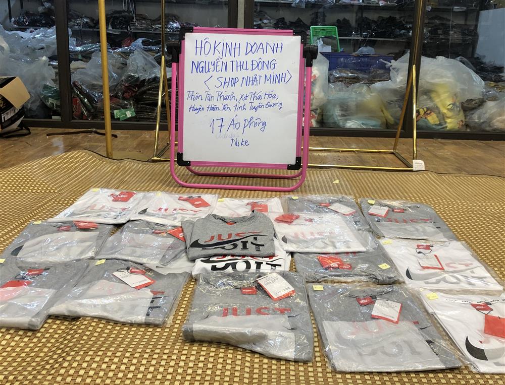 Qua thực hiện các biện pháp nghiệp vụ thẩm tra, xác minh, phối hợp với các đại diện chủ thể sở hữu nhãn hiệu đang được bảo hộ, đã xác định: Toàn bộ số hàng hóa 68 bộ quần áo, 17 áo phông mang các nhãn hiệu nổi tiếng như Adidas, Nike đang tạm giữ của hộ kinh doanh Nguyễn Thu Đông là hàng hóa giả mạo các nhãn hiệu Adidas và Nike đang được bảo hộ tại Việt Nam.