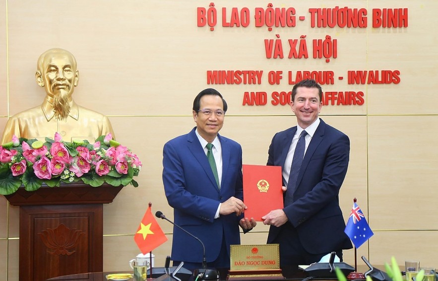 Bộ trưởng Bộ Lao động, Thương binh và Xã hội Việt Nam và Bộ trưởng Bộ Ngoại giao và Thương mại Australia tại Lễ ký kết. (Nguồn: Bộ LĐ-TB và XH)