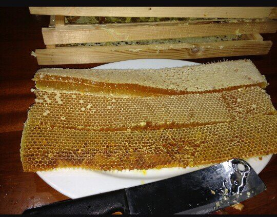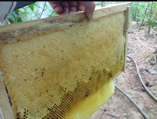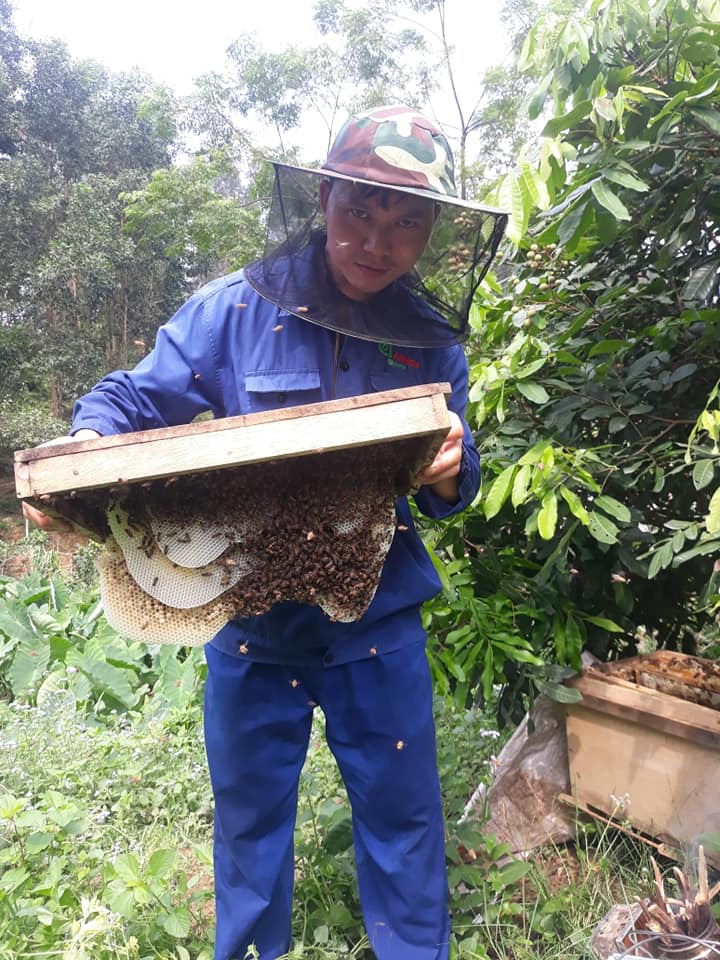 Anh Vũ Văn Giang đang thu hoạch các sản phẩm mật ong tại vườn