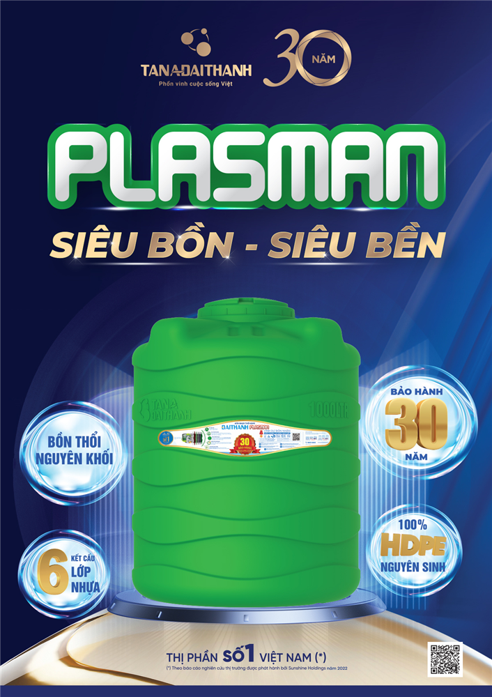 Đại diện tập đoàn Tân Á Đại Thành, ông Trương Công Phong cho biết thêm: “Sản phẩm siêu bồn Plasman được người dân chọn mua nhiều hơn vì công nghệ sản xuất tiên tiến. Bồn được sản xuất từ 100% nhựa nguyên sinh HDPE cùng công nghệ thổi nguyên khối với 6 lớp bảo vệ giúp chống rêu mốc, chống tia UV, ngăn tác động của nước nhiễm phèn, nhiễm mặn, bất chấp thời tiết khắc nghiệt. Năm 2019, siêu bồn Plasman đã xác lập kỷ lục Việt Nam khi vượt qua thử thách rơi từ độ cao 26m không vỡ. Sản phẩm được chúng tôi cam kết bảo hành 30 năm cho khách hàng. Trước đó, chúng tôi đã dành 5 năm để nghiên cứu và mang về công nghệ thổi nguyên khối kích thước lớn để áp dụng trong sản xuất loại bồn siêu bền này. Chúng tôi tự hào đây là công nghệ tiên tiến nhất hiện nay.”