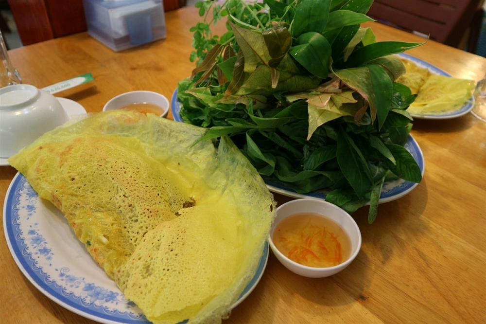 Những đĩa rau sạch sẽ và bánh xèo thơm ngon