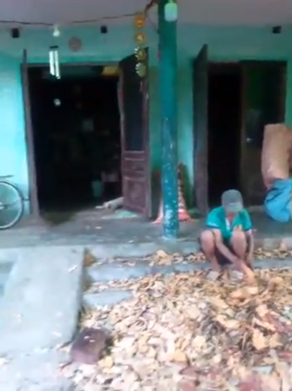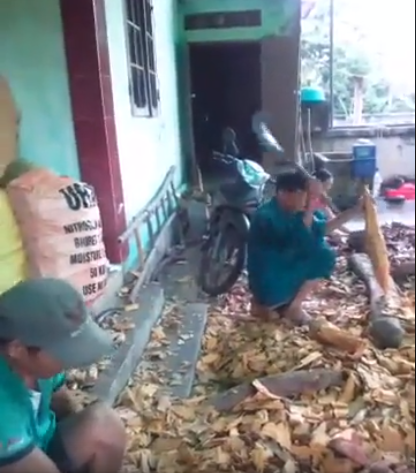 Gia đình đang băm cây thuốc