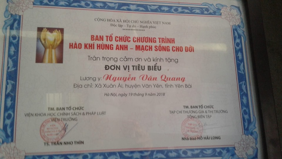 Giải thưởng “ Hào khí hùng anh – mạch sống cho đời”, thương hiệu “ bàn tay vàng” năm 2018
