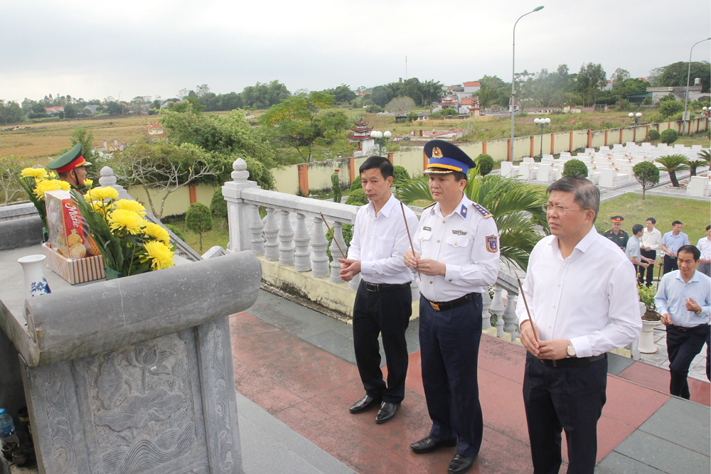 Nhân dịp này, Đoàn công tác Hải đoàn 11 cũng đã đến dâng hương, dâng hoa tại Nghĩa trang liệt sĩ huyện Đầm Hà và Tượng đài Anh hùng liệt sĩ Hà Quang Vóc.
