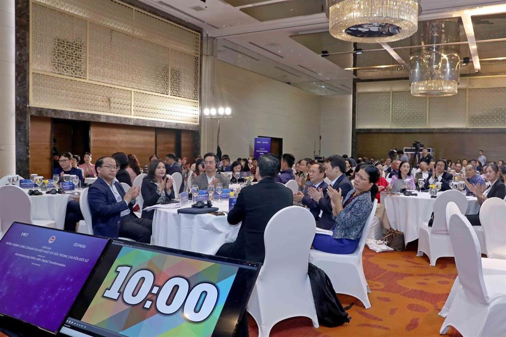 Thứ trưởng Nguyễn Huy Dũng cũng chia sẻ những câu chuyện chuyển đổi số thành công của doanh nghiệp nhỏ và vừa và hy vọng trong thời gian tới sẽ tiếp tục ghi nhận nhiều doanh nghiệp chuyển đổi số mang lại hiệu quả vượt trội, giúp doanh nghiệp tiếp cận thị trường rộng lớn hơn. Từ đó, tạo nên cảm hứng cho cả cơ quan quản lý nhà nước, cơ quan hoạch định chính sách cùng cộng đồng doanh nghiệp nhỏ và vừa cất bước mạnh mẽ hơn trong hành trình này.