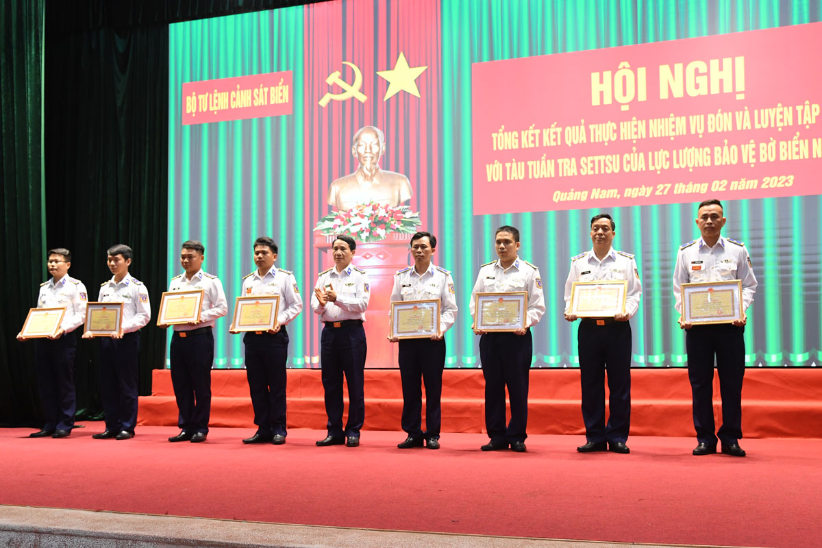 Tại hội nghị, Bộ Tư lệnh Cảnh sát biển đã tặng bằng khen 2 tập thể, 8 cá nhân; Bộ Tư lệnh Vùng Cảnh sát biển 2 tặng giấy khen 5 tập thể, 9 cá nhân đã có thành tích xuất sắc trong thực hiện nhiệm vụ đón, giao lưu và luyện tập chung với tàu tuần tra Settsu của Lực ượng Bảo vệ bờ biển Nhật Bản.
