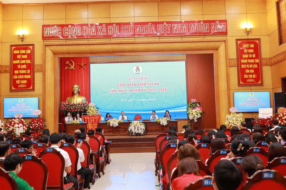 Phát biểu khai mạc Đại hội, Chủ tịch LĐLĐ quận Tây Hồ khóa V Đỗ Thị Hồng Lê khẳng định: Nhiệm kỳ qua, dưới sự chỉ đạo sâu sát của LĐLĐ Thành phố và sự lãnh đạo trực tiếp, thường xuyên của Quận ủy Tây Hồ; sự giúp đỡ, phối hợp và tạo điều kiện của HĐND, UBND quận, hoạt động Công đoàn quận đã gắn liền với nhu cầu, và lợi ích của người lao động. Công đoàn Quận ngày càng khẳng định vai trò, vị thế của tổ chức đối với người lao động và trong xã hội, là cầu nối vững chắc giữa Đảng, chính quyền với đoàn viên, với CNVCLĐ.