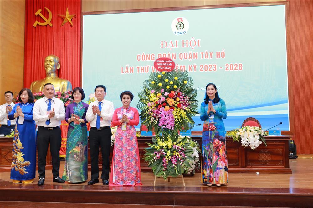 Phát biểu chỉ đạo tại Đại hội, đồng chí Đặng Thị Phương Hoa, Phó Chủ tịch Thường trực LĐLĐ Thành phố khẳng định: Nhiệm kỳ qua, dù gặp nhiều khó khăn, các cấp Công đoàn quận Tây Hồ luôn bám sát nhiệm vụ chính trị của quận và Thành phố; có nhiều đổi mới và hoàn thành tốt các chỉ tiêu và nhiệm vụ nhiệm kỳ khóa V đã đề ra.