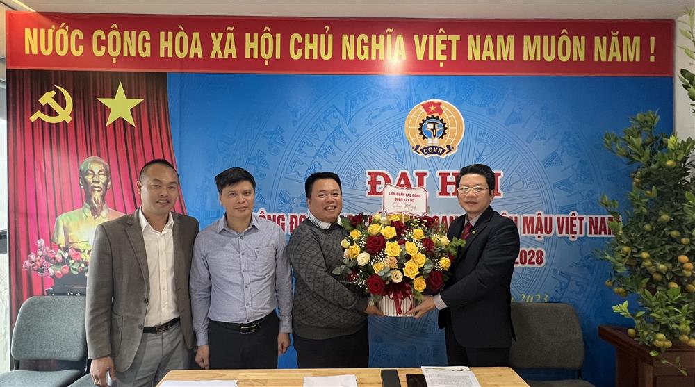 Lãnh đạo LĐLĐ Quận Tây Hồ tặng hoa chúc mừng Đại hội (Ảnh Tiến Dũng)