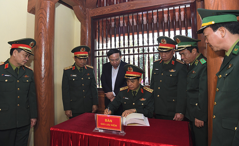 Đại tướng Phan Văn Giang ghi cảm tưởng tại Khu tưởng niệm các anh hùng liệt sĩ Pò Hèn.