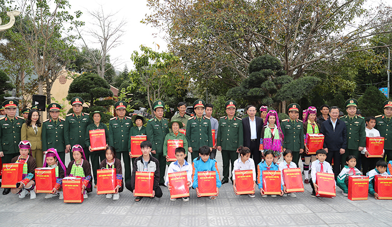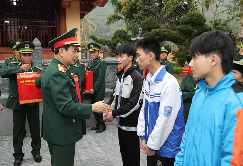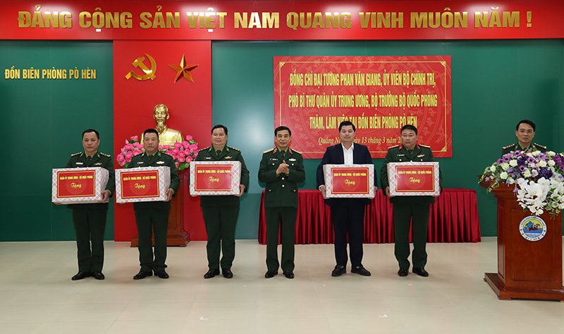 Đại tướng Phan Văn Giang trao quà của Quân ủy Trung ương, Bộ Quốc phòng tặng Đồn Biên phòng Pò Hèn và một số đơn vị đóng quân trên địa bàn.