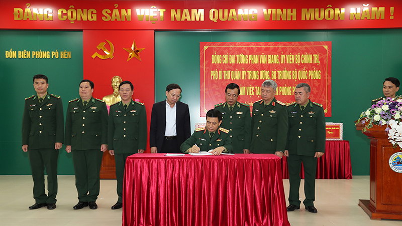 Sau khi nghe đại diện chỉ huy Đồn Biên phòng Pò Hèn báo cáo, Đại tướng Phan Văn Giang biểu dương những thành tích, kết quả mà đơn vị đã đạt được trong thời gian qua; đồng thời nhấn mạnh, qua các giai đoạn xây dựng, chiến đấu và trưởng thành, Đồn Biên phòng Pò Hèn luôn phát huy tốt vai trò nòng cốt chuyên trách cùng các lực lượng và nhân dân các dân tộc trên địa bàn quản lý, bảo vệ vững chắc chủ quyền lãnh thổ, an ninh biên giới quốc gia, trật tự an toàn xã hội trên địa bàn; nắm chắc tình hình, tham mưu giúp cấp ủy, chính quyền địa phương xây dựng nền biên phòng toàn dân và thế trận biên phòng nhân dân vững mạnh.