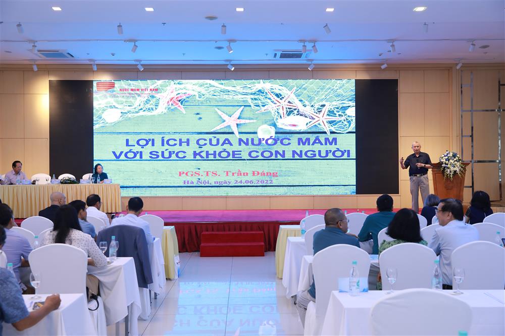 Tiến sĩ Trần Đáng – Chủ tịch Hiệp hội Nước mắm Việt Nam trình bày áo cáo “Lợi ích của nước mắm với sức khỏe con người"