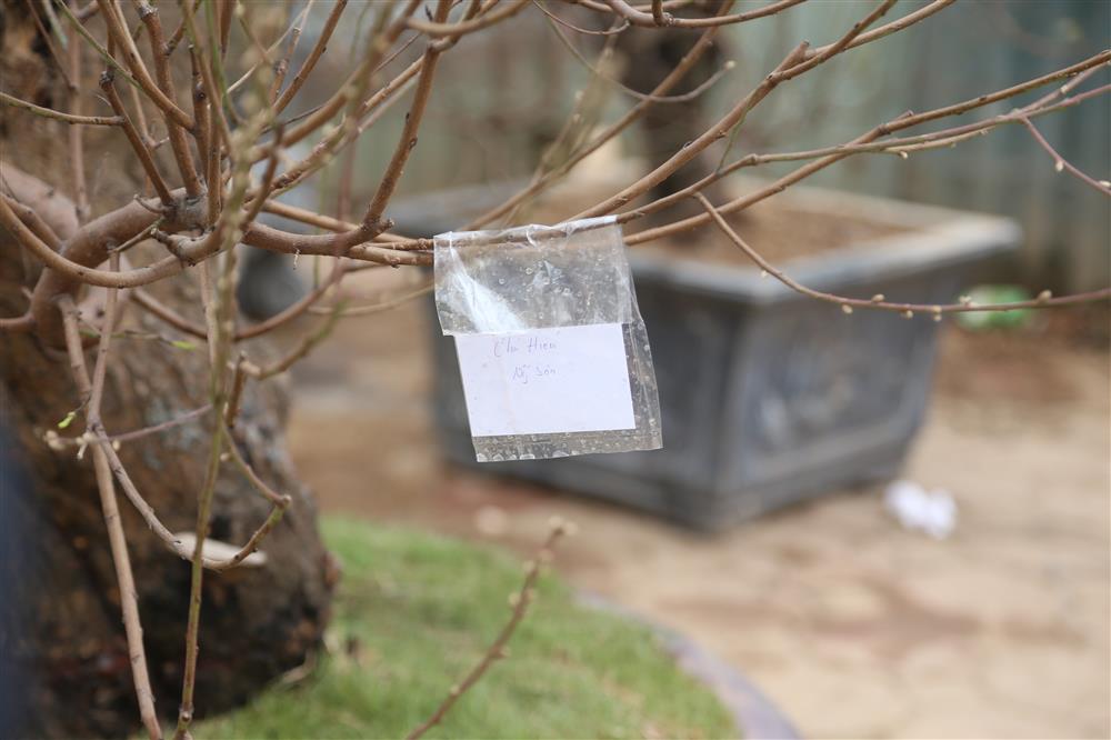Gốc đào được chủ vườn đánh dấu cho khách đặt trước.