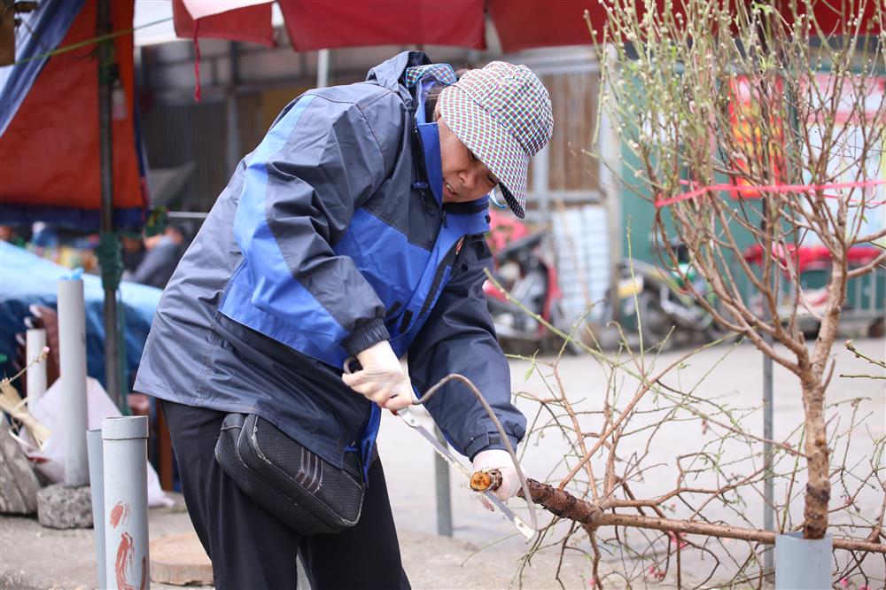 Chị Hà – Một trong những tiểu thương bán đào tại khu vực chợ Hoa Quảng Bá cho biết:“Đào năm nay được bày bán sớm nửa tháng so với bình thường, các nhà vườn phải chăm sóc và tuốt lá từ trước đó 1 tháng để có những cành đào bày bán.”