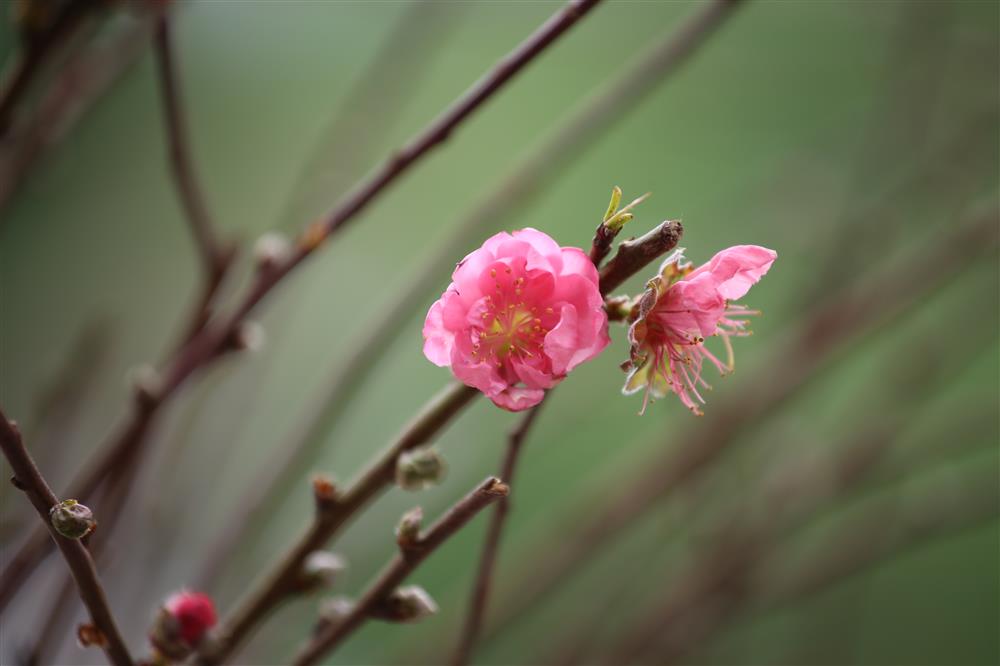 Những bông hoa đào đua nhau khoe sắc.