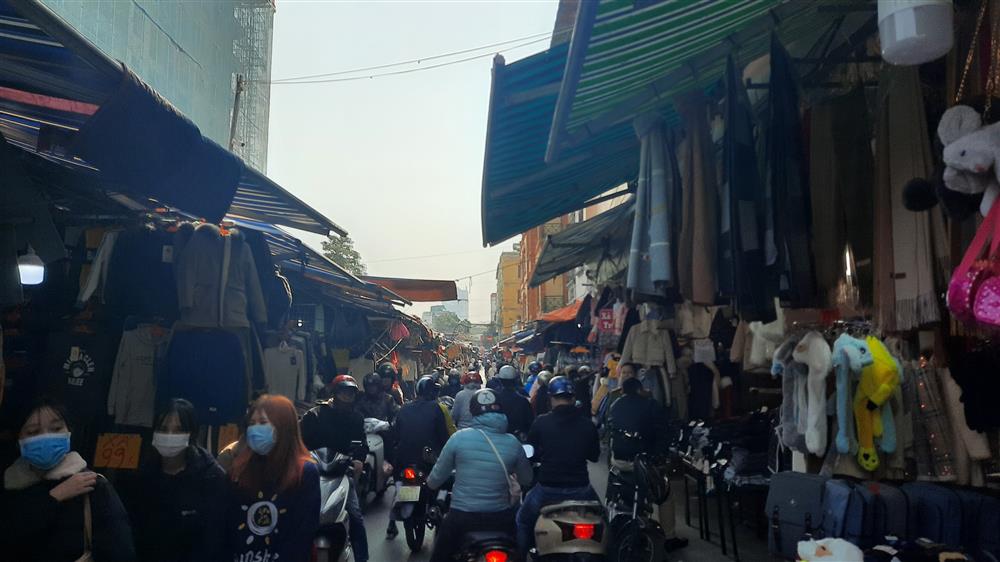 Khu vực chợ Xanh (quận Cầu Giấy, Hà Nội) số lượng khách hàng đi mua sắm đông đúc.