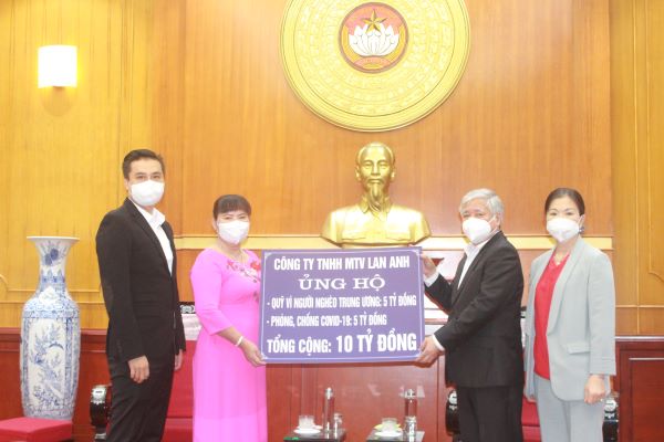 Tại buổi lễ trao ủng hộ diễn ra vào sáng ngày 18/10, doanh nhân Nguyễn Nam Phương đại diện Công ty Lan Anh thông qua Ủy ban Trung ương Mặt trận Tổ quốc Việt Nam ủng hộ số tiền là 10 tỷ đồng. Trong đó, ủng hộ công tác phòng, chống dịch Covid-19 5 tỷ đồng, ủng hộ Quỹ “Vì người nghèo” Trung ương năm 2021 số tiền 5 tỷ đồng.