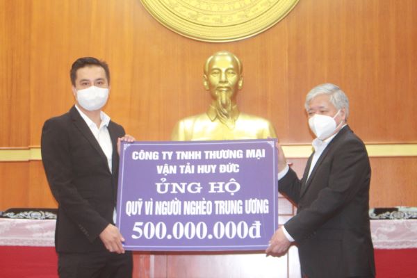 Cùng tham gia ủng hộ Quỹ Vì người nghèo Trung ương đợt này, đại diện của Công ty TNHH Thương mại Vận tải Huy Đức, ông Võ Ngọc Tài (là con của bà Nguyễn Nam Phương) ủng hộ số tiền 500 triệu đồng.