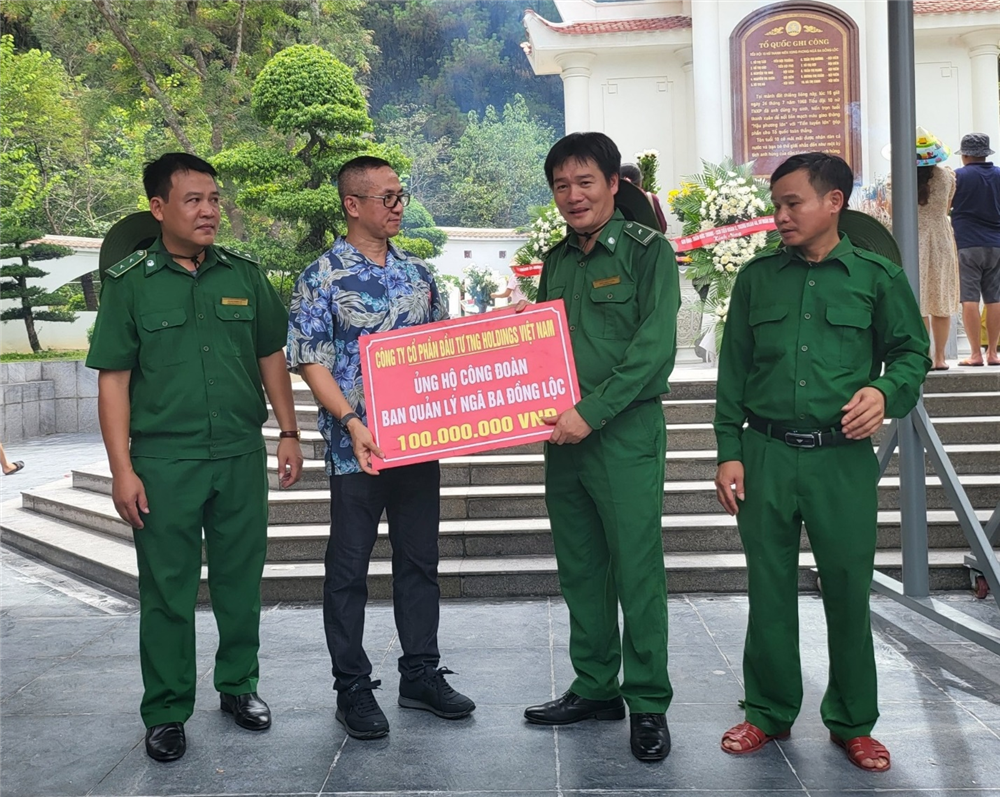 Đại diện Tập đoàn ủng hộ Ban quản lý Khu mộ 10 nữ Anh hùng liệt sĩ Thanh niên xung phong tại Ngã ba Đồng Lộc (Can Lộc, Hà Tĩnh) số tiền 100 triệu đồng