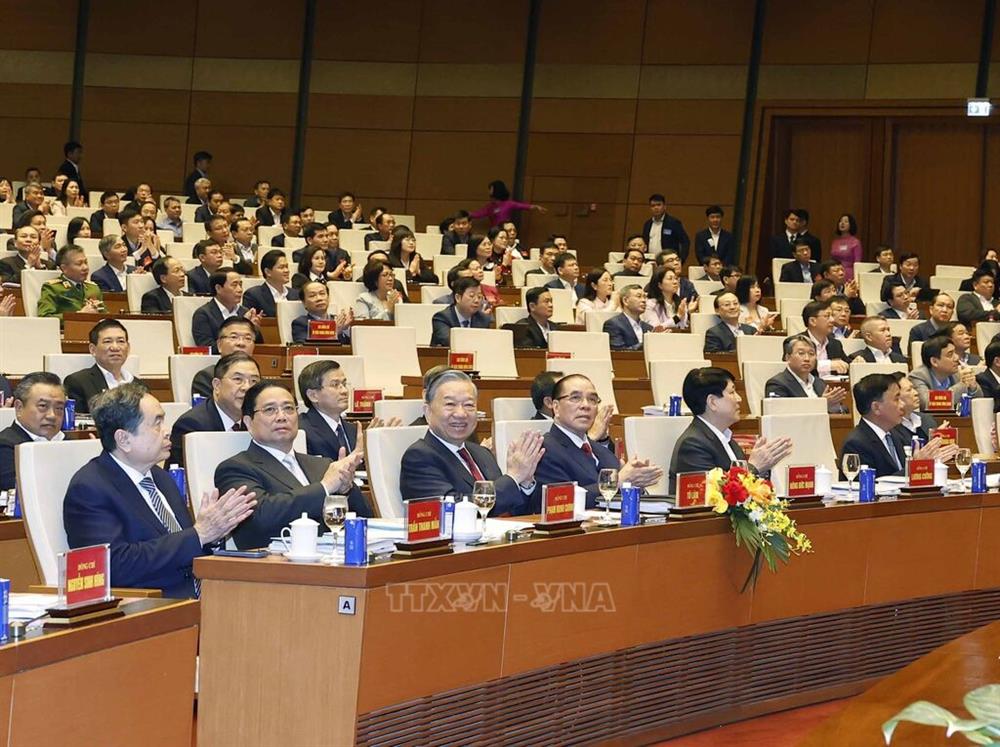Đây là Hội nghị rất quan trọng được tổ chức bằng hình thức trực tiếp từ Hội trường Diên Hồng, Nhà Quốc hội và kết hợp trực tuyến tới 31.097 điểm cầu ở Trung ương, các tỉnh/thành phố, các xã, phường, đặc khu, các tổ chức đảng trong quân đội, công an và doanh nghiệp với hơn 1,9 triệu đại biểu tham dự tại các điểm cầu. Hội nghị được truyền hình trực tiếp trên các kênh, sóng của Đài Truyền hình Việt Nam và Đài Tiếng nói Việt Nam, cùng các nền tảng số. (Ảnh TTXVN)