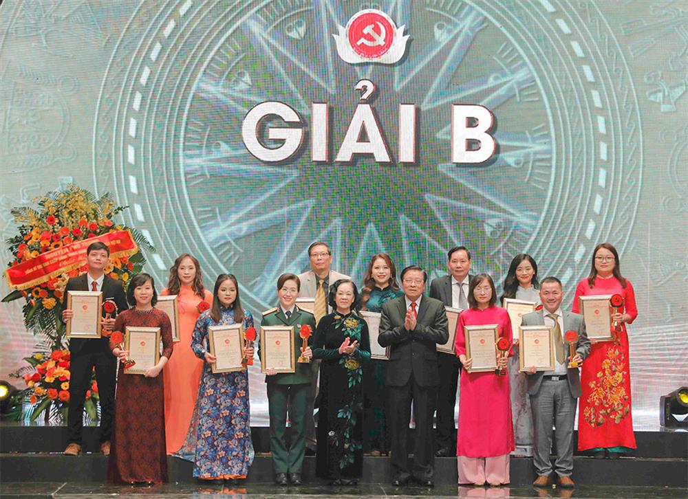 Trưởng Ban Tổ chức Trung ương Trương Thị Mai và Trưởng Ban Nội chính Trung ương Phan Đình Trạc trao giải B cho tác giả, nhóm tác giả.
