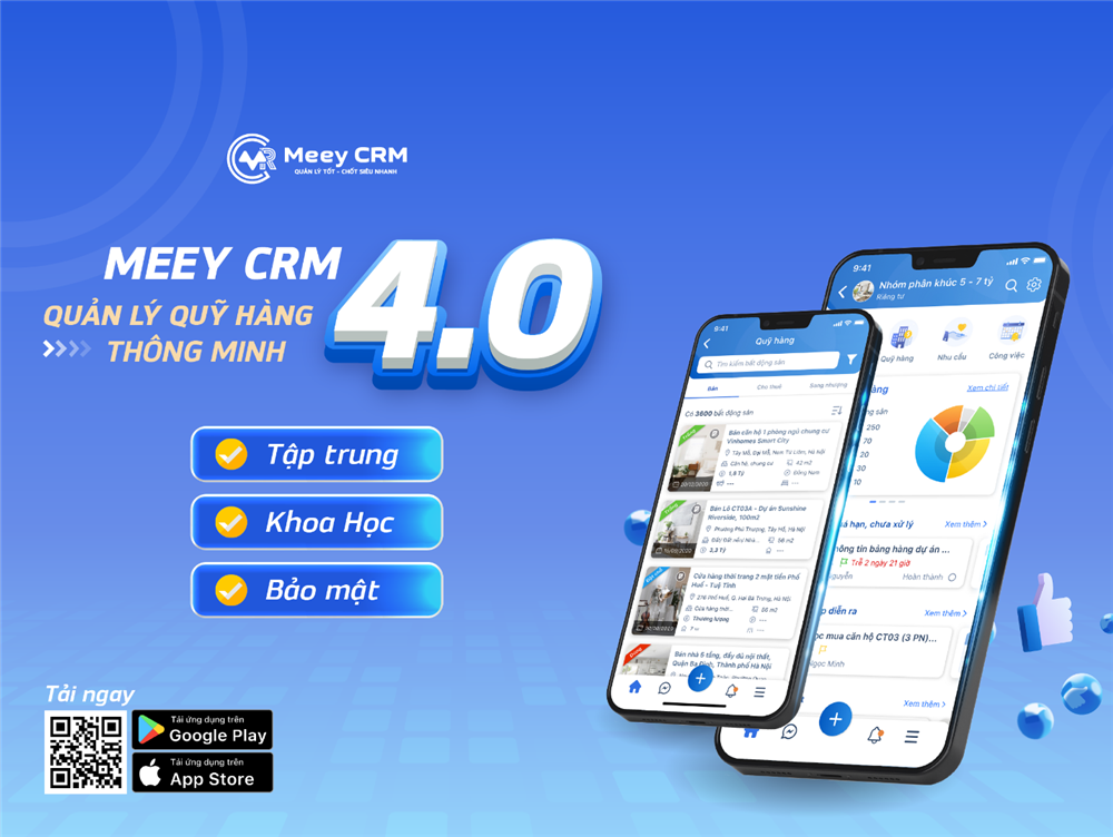 Meey CRM được nghiên cứu gần mười năm và đã ra mắt được hai năm. Hiện tại, hầu hết các tính năng của ứng dụng được đưa ra để khách hàng trải nghiệm miễn phí và chúng tôi đã nhận được những phản hồi tích cực. Từ những phản hồi đó, chúng tôi tiếp tục cải tiến sản phẩm để nâng cao trải nghiệm của người dùng. Thời gian tới, Meey Land sẽ giới thiệu những phiên bản tiếp theo để tối ưu hóa trải nghiệm của khách hàng một cách hiệu quả hơn, đơn giản hơn nhằm giải quyết dứt điểm, tường tận các vấn đề trong quá trình giao dịch và phát triển BĐS.