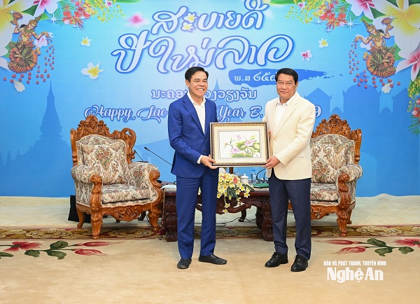 Tỉnh Nghệ An chúc Tết cổ truyền Bunpimay tỉnh Bô Ly Khăm Xay. Ảnh: Thành Cường