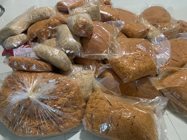 100kg chà bông thịt được chứa đựng trong 30 bao bóng không nhãn mác, không rõ nguồn gốc xuất xứ bị tịch thu và đem đi tiêu hủy