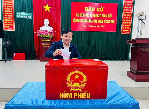Sáng 15/3/2026, hòa chung không khí Ngày hội non sông - Ngày bầu cử đại biểu Quốc hội khóa XVI và đại biểu Hội đồng nhân dân các cấp nhiệm kỳ 2026 - 2031, các đồng chí lãnh đạo Đoàn đại biểu Quốc hội tỉnh; Thường trực, các Ban HĐND tỉnh Nghệ An và Văn phòng Đoàn ĐBQH và HĐND tỉnh đã tham gia bỏ phiếu tại các khu vực bỏ phiếu nơi cư trú, đồng thời đến một số địa phương được phân công kiểm tra công tác bầu cử, thực hiện quyền và nghĩa vụ công dân theo quy định của pháp luật.