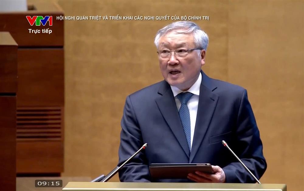 Đồng chí Nguyễn Hòa Bình, Phó Thủ tướng Thường trực Chính phủ trình bày Chuyên đề “Chương trình hành động thực hiện Nghị quyết số 79-NQ/TW và Nghị quyết số 80-NQ/TW”