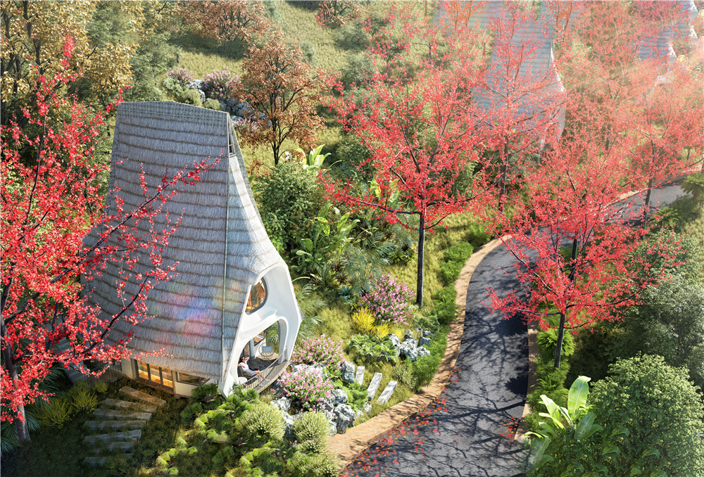 Lấy hình tượng từ những chiếc Nón lá xinh đẹp, những căn biệt thự nhà Nón được thiết kế với kiến trúc độc bản, nhẹ nhàng, thanh thoát, như gợi lên hình ảnh chiếc nón cổ truyền đã đi vào thơ ca của hàng trăm thế hệ. Cùng với đó, việc sử dụng tối đa những vật dụng từ thiên nhiên trong thiết kế nội thất như tre, nứa….tạo nên sự thân thiện, bắt mắt cho những căn biệt thự Nhà Nón. Mỗi căn biệt thự đều được thiết kế như một resort thu nhỏ với đầy đủ những tiện ích cao cấp như mini pool, nhà hàng, hầm rượu, vườn BBQ, đường dạo bộ chủ đề….cùng vô vàn điểm check –in khác, hứa hẹn sẽ là thiên đường nghỉ dưỡng cho bất kỳ vị khách nào.