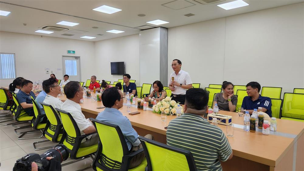 Ông Ngô Huy Hân, Giám đốc Đối ngoại và Truyền thông cụm miền Trung Tập đoàn TH giới thiệu với đoàn về Trang trại TH