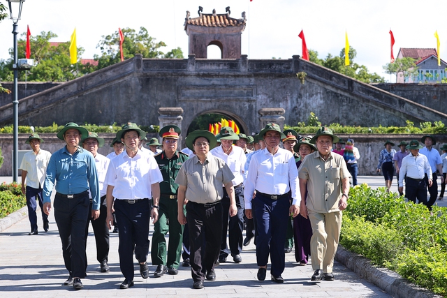 Tại Thành cổ Quảng Trị, Thủ tướng Phạm Minh Chính và Đoàn công tác dâng hương, tưởng nhớ, tri ân công lao to lớn của các anh hùng, liệt sĩ đã anh dũng hy sinh trong chiến dịch 81 ngày - đêm (28/6 - 16/9/1972) chiến đấu và bảo vệ thị xã Quảng Trị cũng như Thành cổ Quảng Trị.
