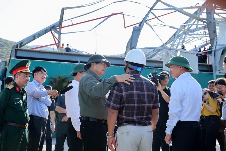 Thủ tướng Phạm Minh Chính thăm hỏi, động viên doanh nghiệp trên địa bàn nỗ lực khắc phục hậu quả bão số 13, nhanh chóng khôi phục sản xuất kinh doanh.