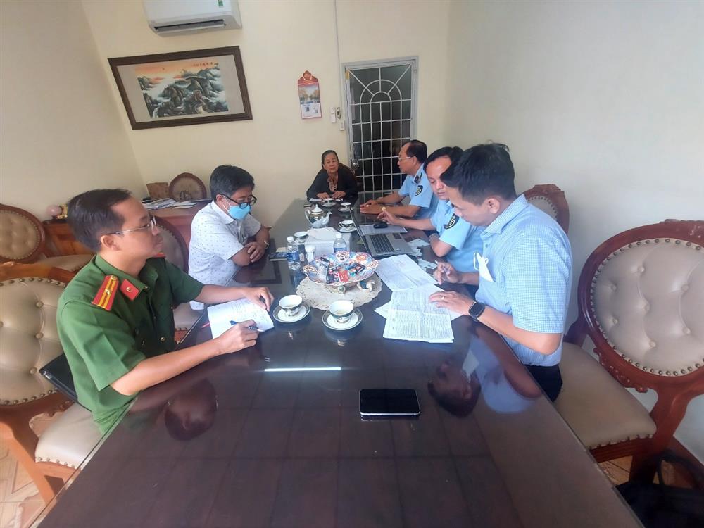 Lực lượng chức năng tuyên truyền các hộ kinh doanh xăng dầu (Ảnh Cục QLTT Tiền Giang)