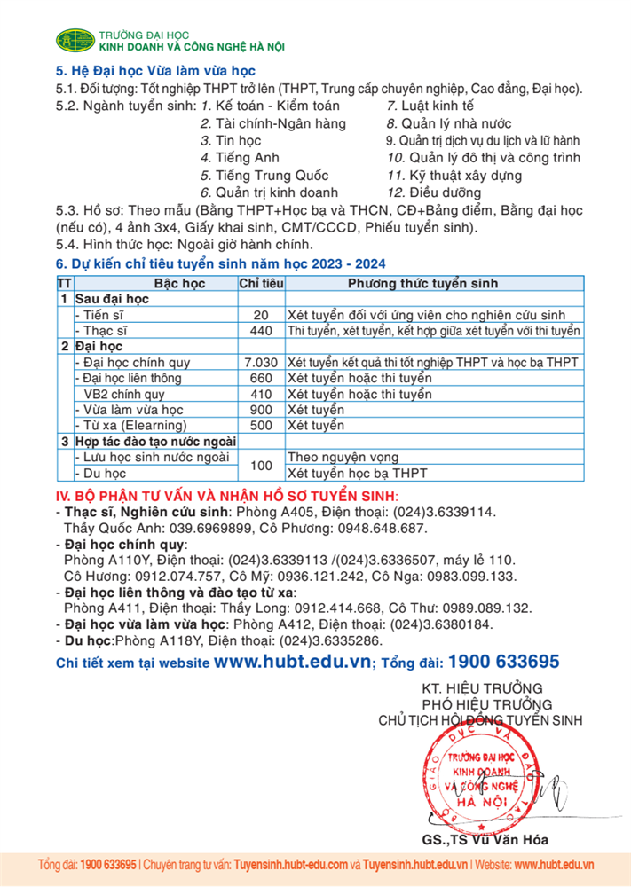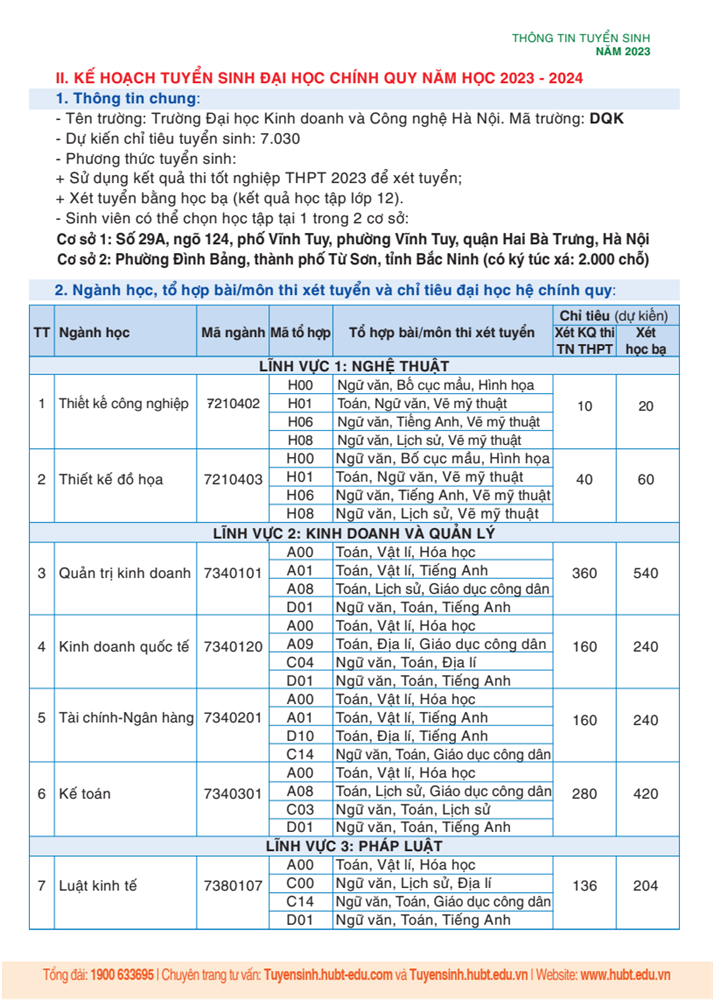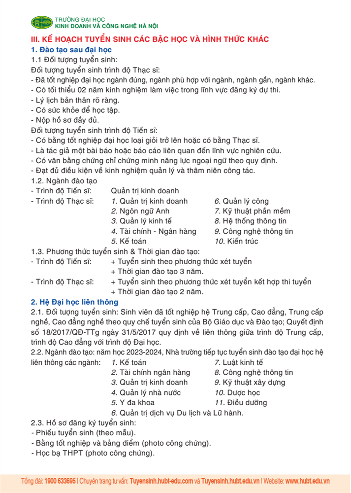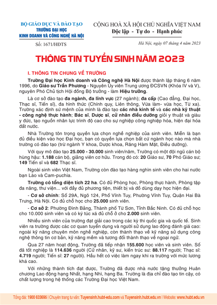 Trường Đại học Kinh doanh và Công nghệ Hà Nội tuyển sinh năm 2023
