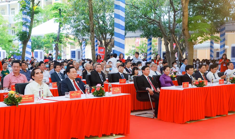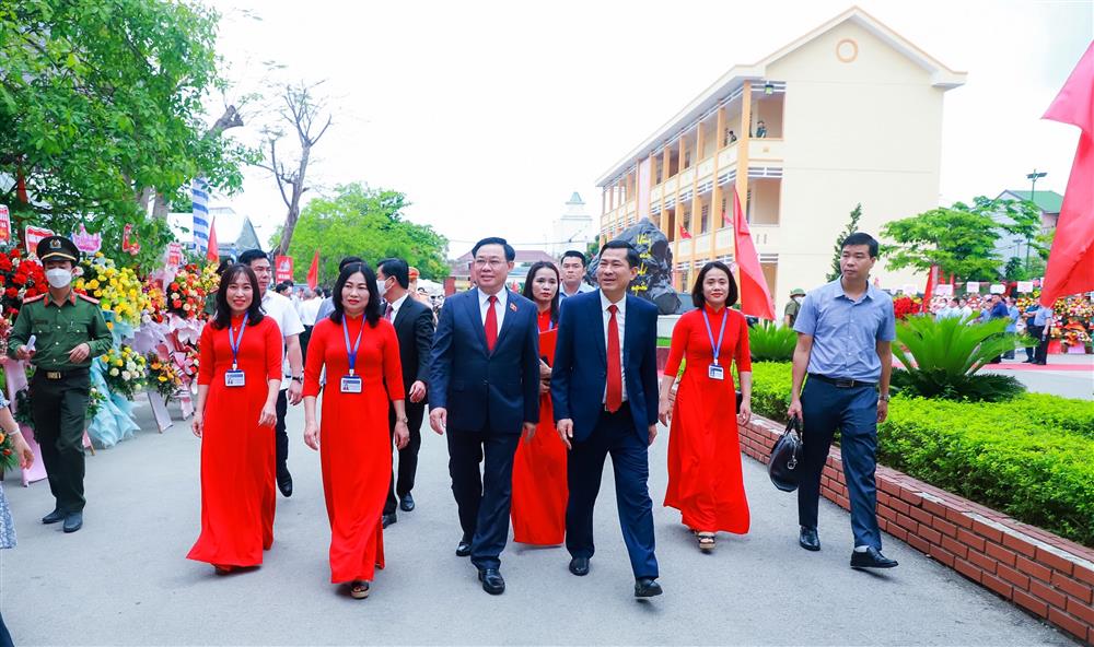 Chủ tịch Quốc hội Vương Đình Huệ về dự Lễ kỷ niệm 60 năm thành lập Trường THPT Nguyễn Duy Trinh. Ảnh: TD